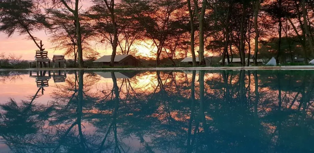 Africa Safari Lake Manyara is situated between Lake Manyara and the foothills of the Ngorongoro Crater, in a unique location. From your luxury bungalow with veranda, you can see hippos, zebras and wildebeest passing by, while the lake changes with the seasons.
