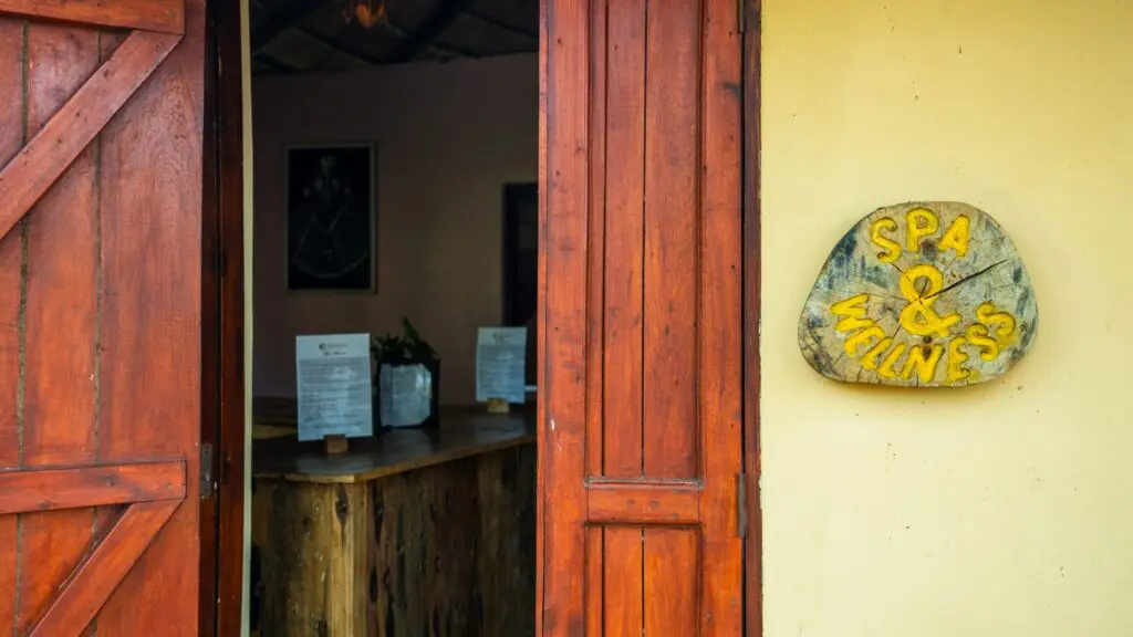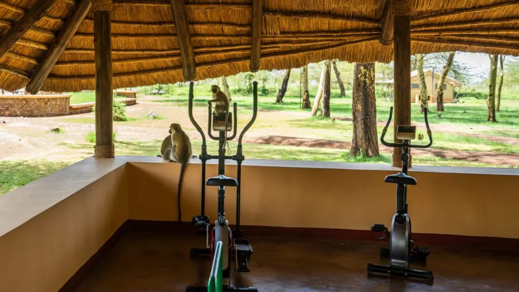Feel like getting a little active during your trip? Then go for a good workout at the gym. This gym is covered, but without walls or windows, so you’re really exercising in nature.
