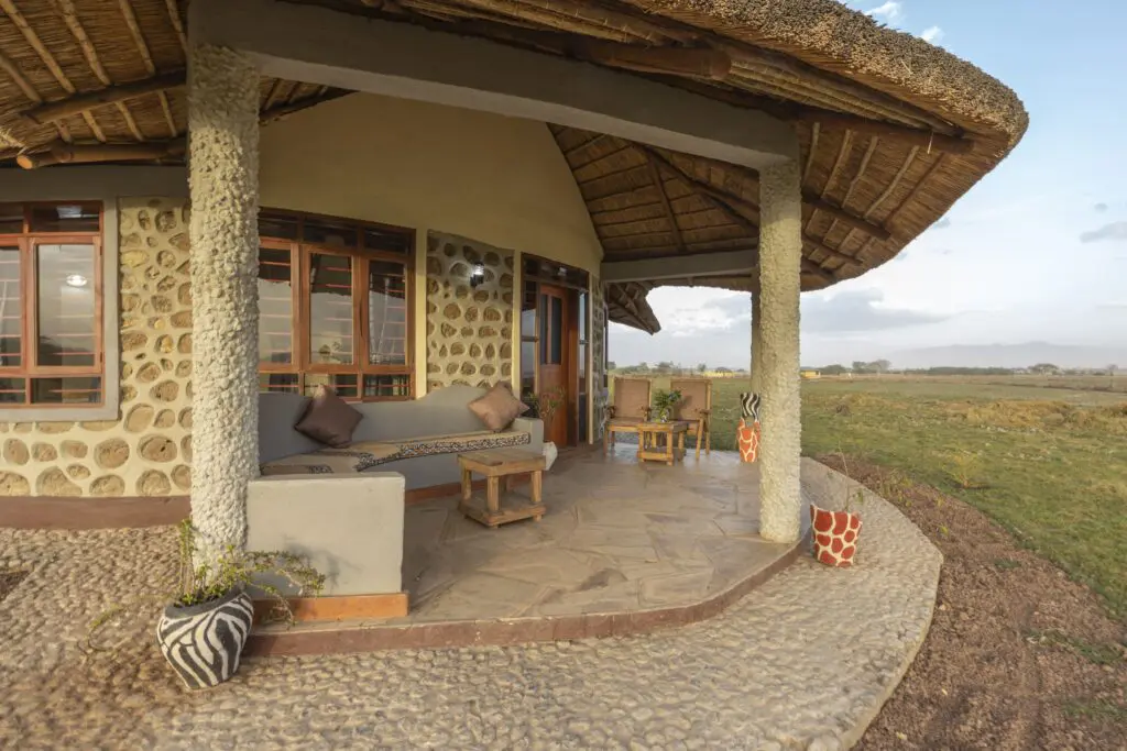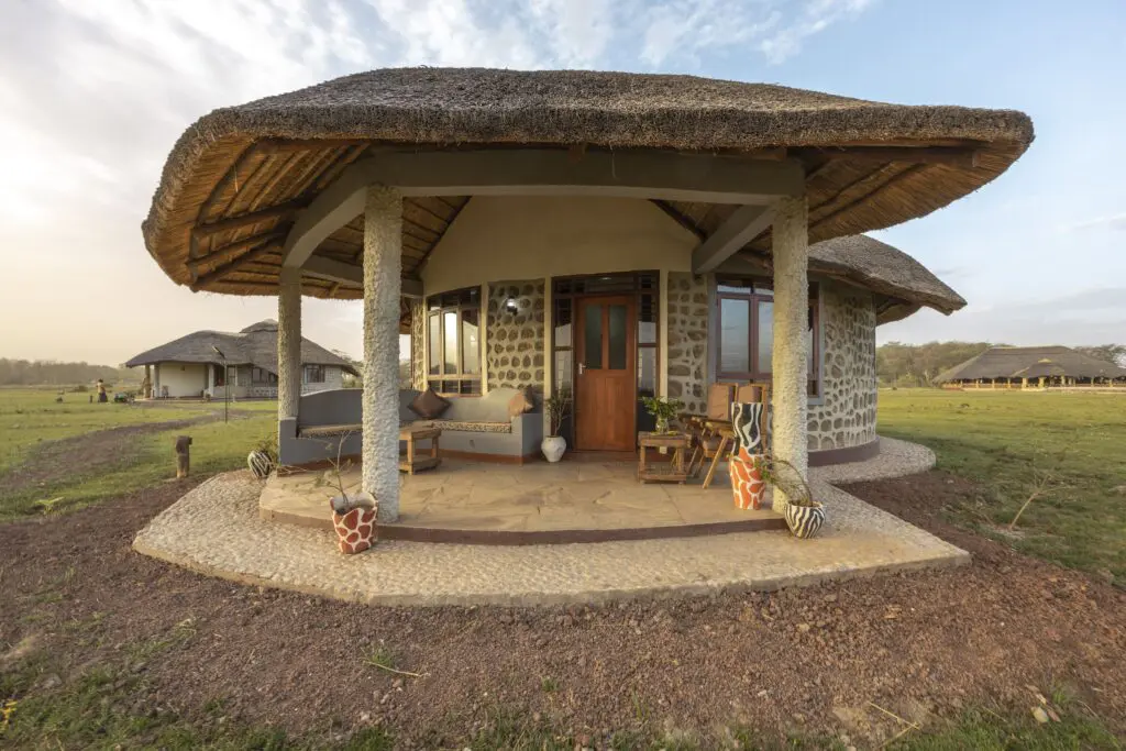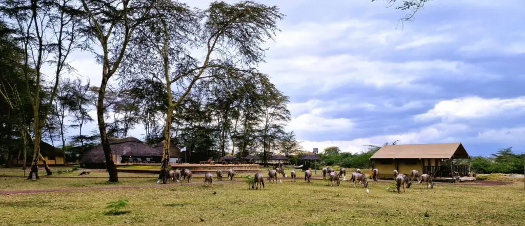 Imagine, you wake up, make a cup of coffee and step outside to drink it on your porch. You see nothing but nature, the lake and various zebras and wildebeests grazing around your bungalow. Great right?