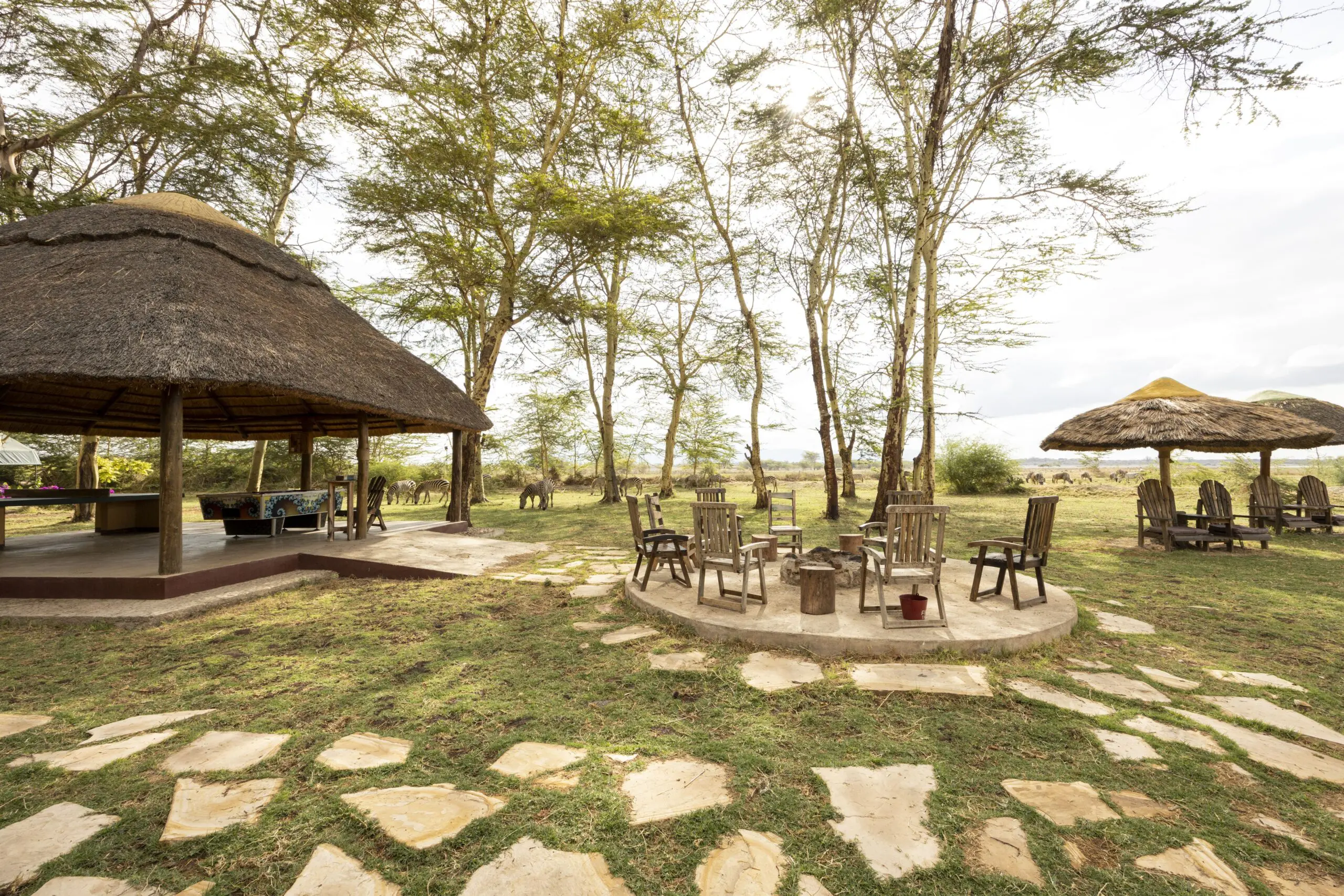 Step inside the restaurant and immediately experience the amazing view. There are no windows in the restaurant, making you even more connected to the surroundings. The restaurant is located on the shores of the lake, on the border of Lake Manyara National Park. Enjoy the Maasai people walking by and herding their cattle. Or of wildlife, such as zebras and wildebeest grazing the grass.