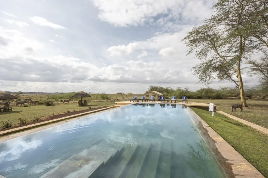 The pool at Africa Safari Lake Manyara is a joy to swim in. It is large and just a bit higher up, giving you a beautiful view of the property, the vast plains and Lake Manyara. Zebras regularly come to graze around the pool and you can relax on one of the sun beds with towels. The bar is right next to it and if you want to get out of the sun, you can enjoy reading a book under the parasol.