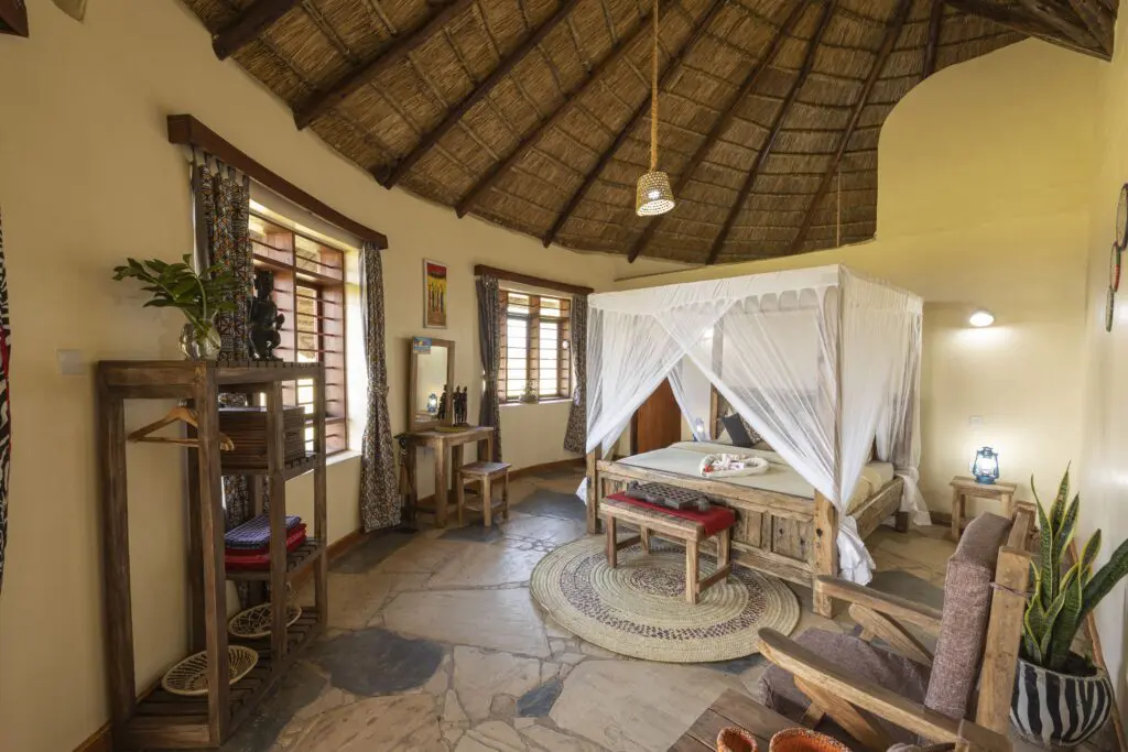 The Premium Bungalows are located on the shores of Lake Manyara, offering maximum privacy and ultimate relaxation. Inside, the bungalows are luxuriously furnished and decorated with African elements.