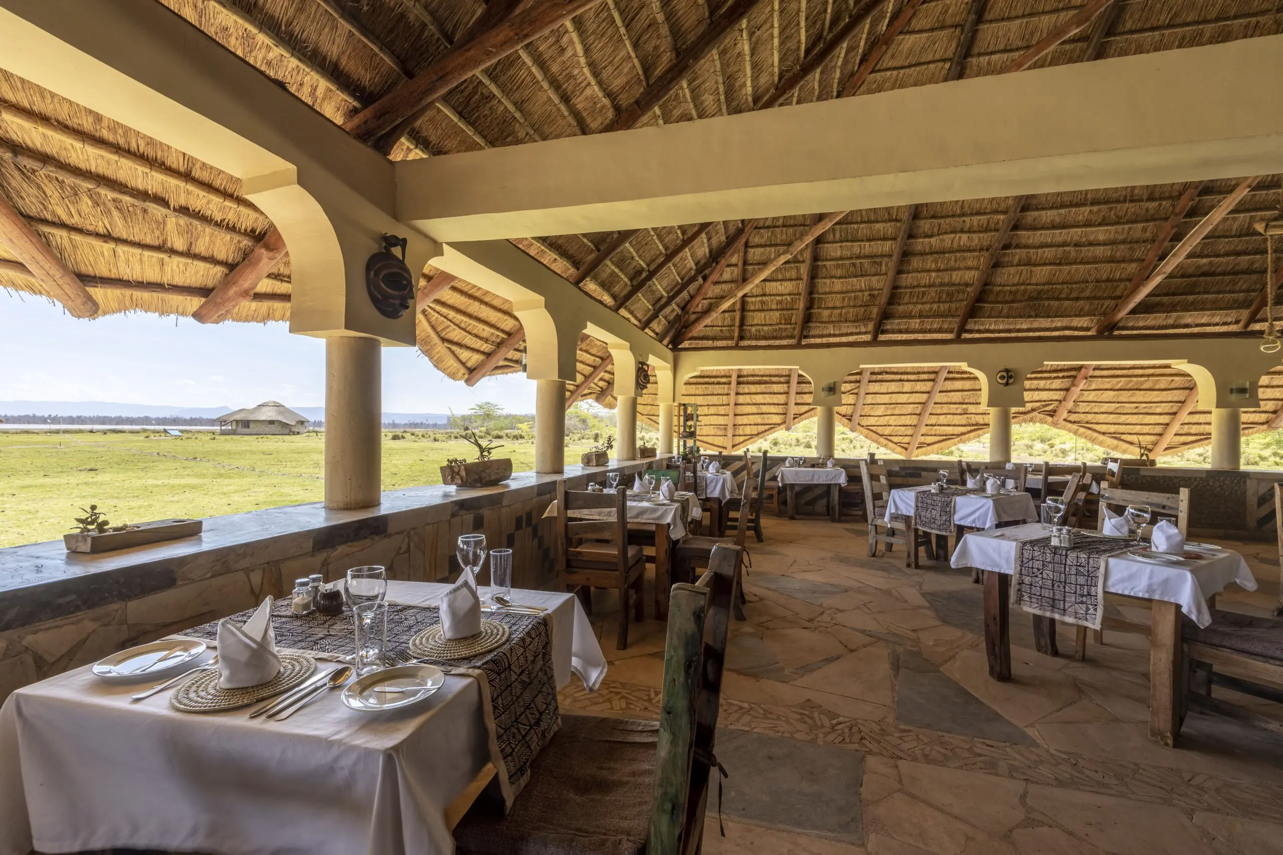 Step inside the restaurant and immediately experience the amazing view. There are no windows in the restaurant, making you even more connected to the surroundings. The restaurant is located on the shores of the lake, on the border of Lake Manyara National Park. Enjoy the Maasai people walking by and herding their cattle. Or of wildlife, such as zebras and wildebeest grazing the grass.