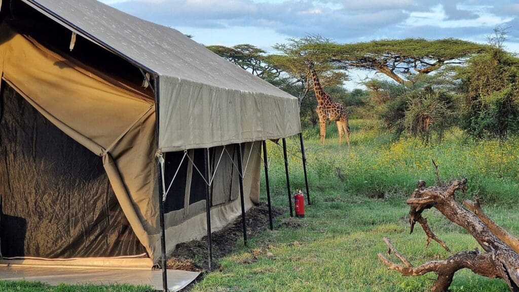 Suchen Sie ein komfortables Safari-Erlebnis für die ganze Familie? Dann wählen Sie die Safari Comfort Family Unterkunft. Dieses geräumige Zimmer bietet Platz für bis zu 6 Gäste, mit einem Kingsize-Bett und zwei Etagenbetten. Die Unterkunft verfügt über ein eigenes Badezimmer mit Dusche, einer europäischen Toilette und einem Waschbecken. Die möblierte Terrasse ist der ideale Ort, um zusammenzukommen und die wunderschöne Aussicht auf die afrikanische Ebene zu genießen.