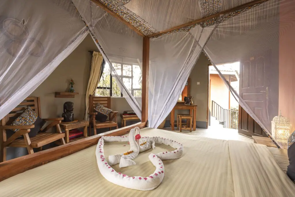 Vanaf de accommodatie heb je een mooi uitzicht op Mount Meru, terwijl het uitzicht vanaf de balkons verder reikt dan de lichtjes van Arusha naar het bergachtige landschap. Om Afrika Safari Arusha te bereiken moet je over een onverharde weg door de Ngateu heuvels. Dwars door een lokale wijk met veel winkeltjes en een drukke samenleving. Maar eenmaal aangekomen ervaar je een gevoel van rust en ruimte.