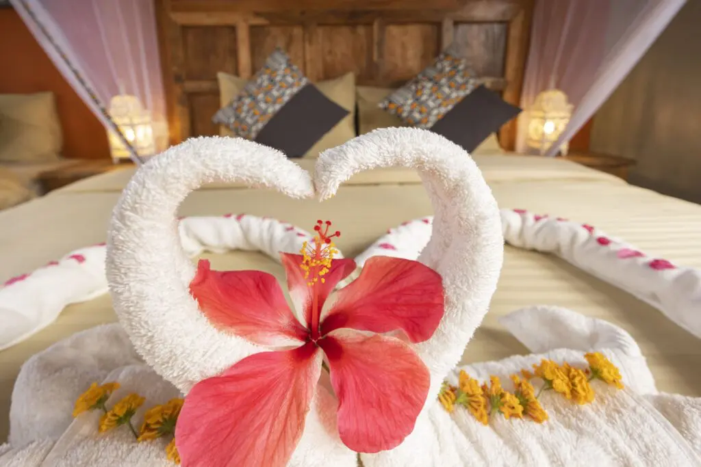 De accommodatie bestaat uit standaard kamers en luxury kamers. De standaard kamers liggen in een gebouw met twee verdiepingen aan een open balustrade die aan de buitenkant van het gebouw loopt. De luxe kamers liggen in op zichzelf staande ronde gebouwen met twee verdiepingen. Elke verdieping is een kamer.