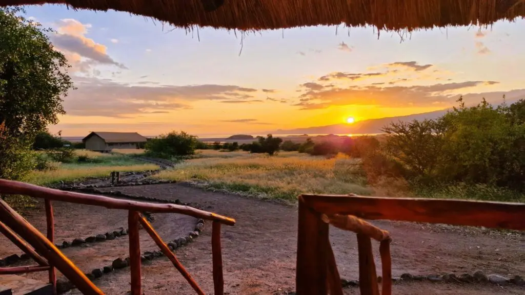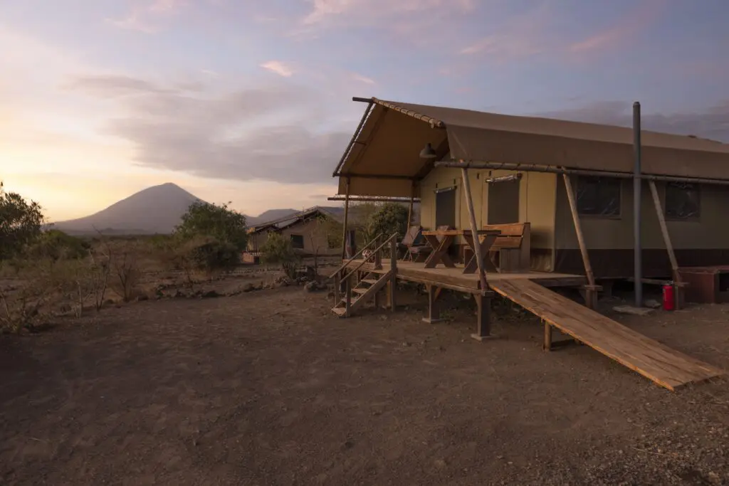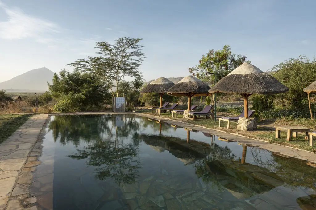 Het terrein is ruim opgezet en biedt verschillende accommodatiemogelijkheden. Het zwembad met ligbedden en parasols, wordt omringd met een prachtig landschap en biedt een uniek uitzicht op de naburige Mount Ol Doinyo Lengai, een nog steeds actieve en unieke vulkaan. Vanuit het verhoogde restaurant met receptie en bar is het uitzicht op de accommodatie, het flamingomeer, de schrijdende giraffen en galopperende zebra’s en de vulkaan zelf is onbeschrijfelijk.