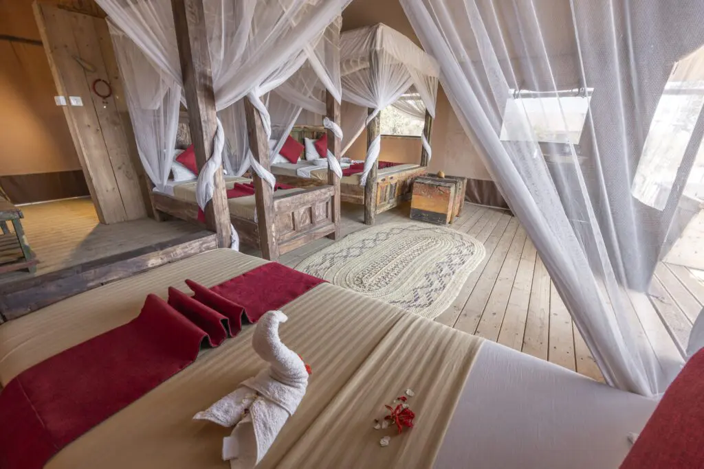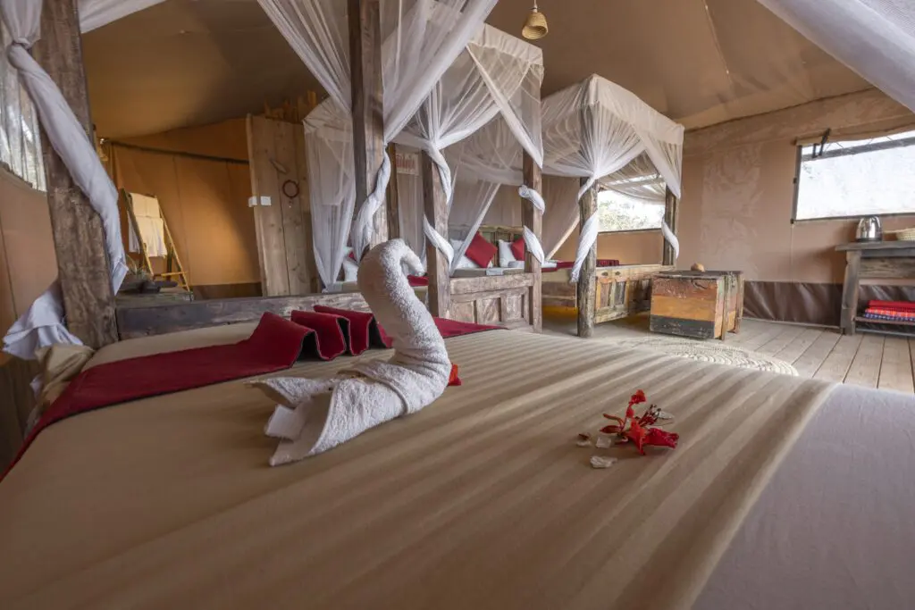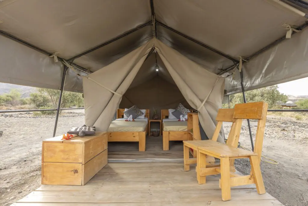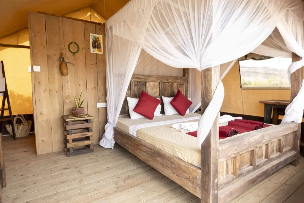 Wil je graag in een tent overnachten om het safari gevoel te optimaliseren? Dan is de Safari Luxury Glamping tent echt iets voor jou. Deze luxe glamping tent heeft alle nodige luxe van binnen en de geluiden van de natuur van Lake Natron van buiten.