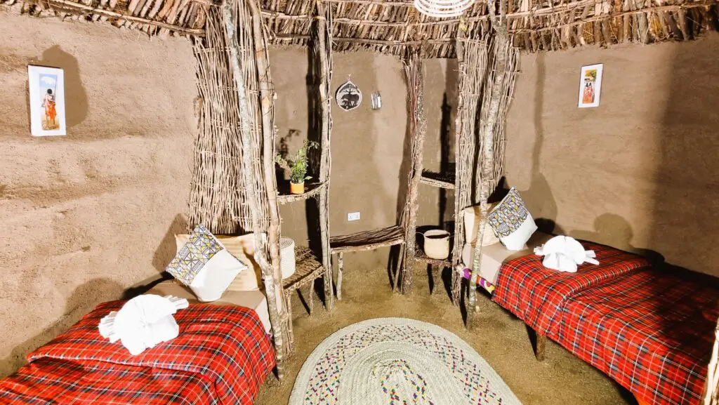 De Maasai safari hut is klein en eenvoudig. Gebouwd op de lokale traditionele manier met een aarden vloer, traditioneel pleisterwerk en gras als dakbedekking. Je kan hier met maximaal 2 gasten verblijven en de Maasai hut is uitgerust met 2 eenpersoonsbedden. Het meubilair is gemaakt van organische materialen zoals twijgen en takken, en Maasai dekens op de bedden maken het gevoel compleet. Op de stoelen buiten kun je je dag bespreken met je buren, zoals de Maasai-oudsten zouden doen. Lokaler dan dit wordt het niet!