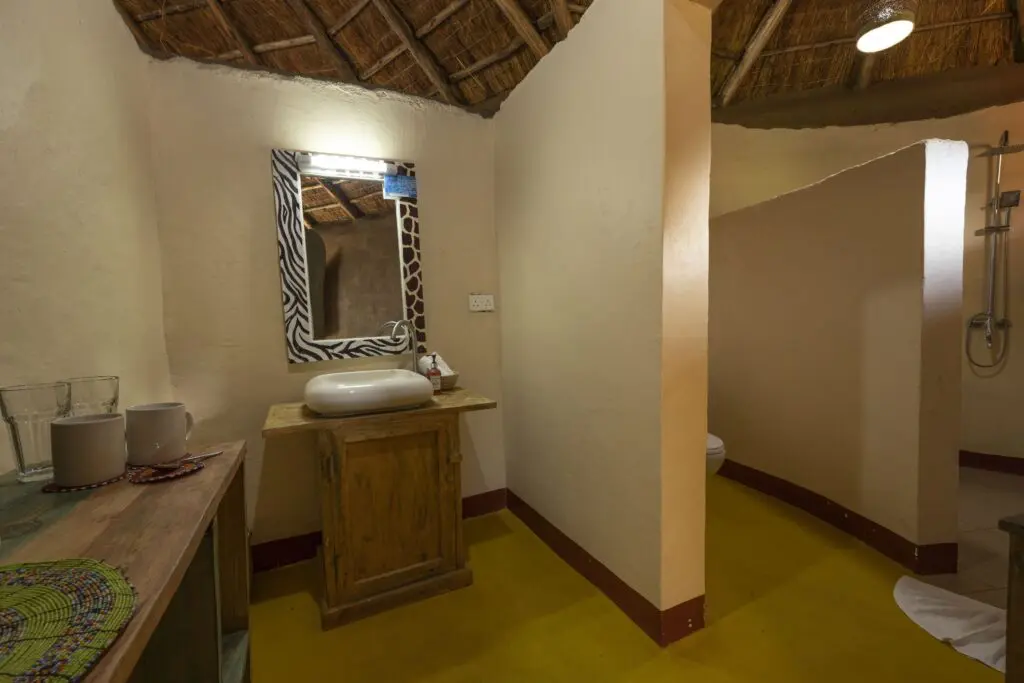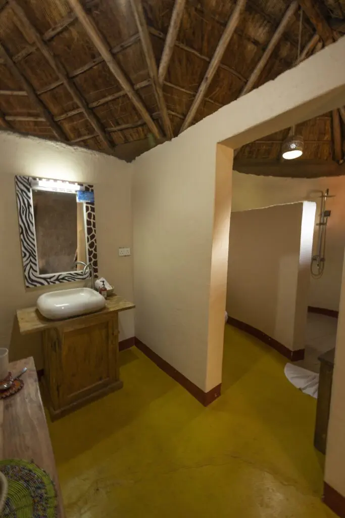 De ruime badkamer met inloopdouche en Europees toilet zijn van alle gemakken voorzien en in de kamer zelf kun je jouw spullen kwijt in de garderobekast. Buiten heb je een kleine veranda, ook versierd met Maasai handwerk en met uitzicht op de Ololosokwan vallei.
