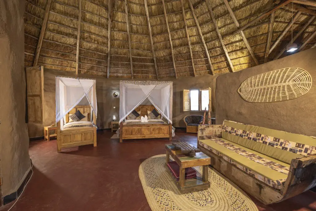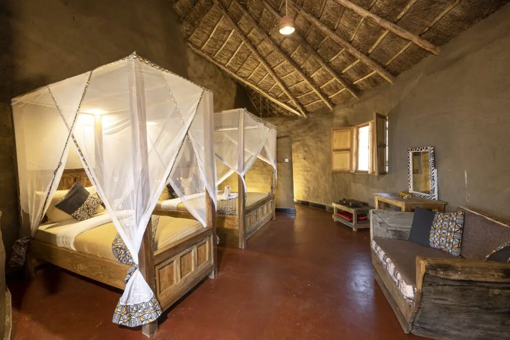 Dit is de grotere versie van de Safari comfort bungalow en gebouwd op dezelfde Maasai manier. Deze bungalow is geschikt om met de hele familie samen in één “manyatta” te verblijven, net zoals de Maasai families zouden doen. De Comfort Family Bungalow is uitgerust met 2 kingsize bedden en een eenpersoons bed. Een extra eenpersoonsbed kan op verzoek worden bijgeplaatst. Een kaptafel tafel, een open garderobekast, een zithoek met een salontafel, een inloopdouche, een Europees toilet en een wastafel maken de kamer compleet. Sluit de dag heerlijk af op je eigen veranda met stoelen tijdens de zonsondergang. Waarschijnlijk zie je de Maasai nog voorbij lopen met hun vee of een aantal grazende zebra’s.