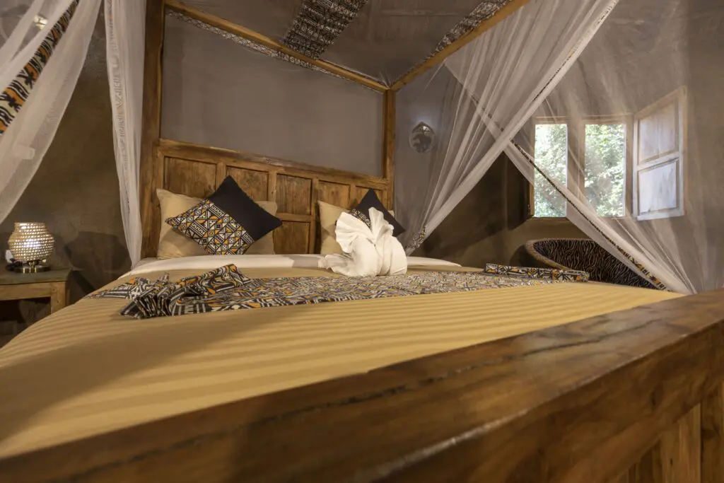 Stap binnen in de Safari comfort bungalow en voel je direct thuis. Het moderne comfort, gedecoreerd met traditioneel kralenwerk en kunstvoorwerpen. De Comfort Bungalow is uitgerust met een kingsize bed en een eenpersoonsbed.