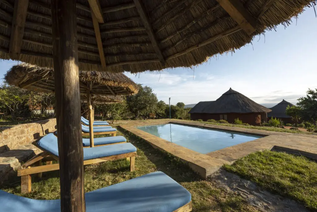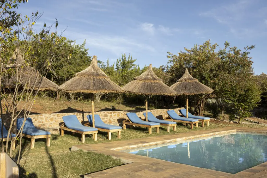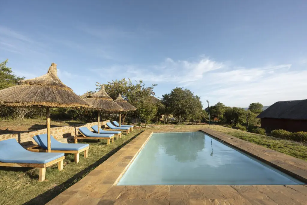 Even afkoelen in het zwembad na een lange dag in de safari jeep? Dat kan bij Africa Safari Maasai Boma. Het zwembad ligt naast het restaurant en de bar en beschikt over een aantal lekkere ligbedden met vaste parasols. Maar dit zwembad is ook de perfecte plek om de zonsopkomst te bekijken. Magische kleuren verschijnen als de zon vanachter de Keniaanse heuvels steeds hoger komt. Die vroege wekker is het absoluut waard.
