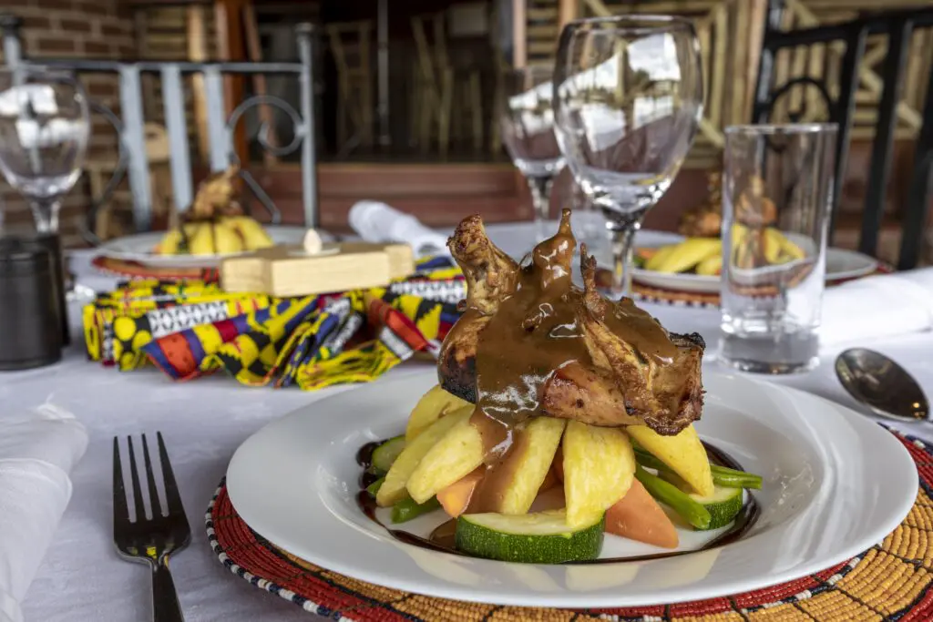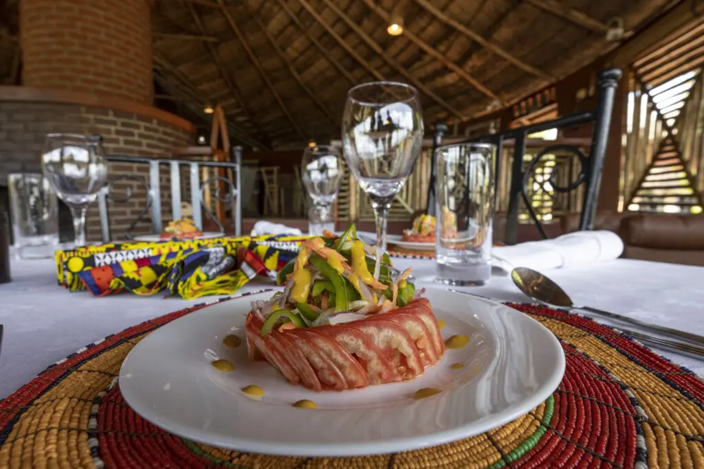 De chef doet dagelijks zijn uiterste best om de lekkerste gerechten op tafel te zetten, uit verschillende wereldkeukens. Vers bereid en met liefde opgediend door een van zijn collega’s. Borrel nog lekker na bij de openhaard of speel een Tanzaniaans spel aan de bar voordat je weer heerlijk gaat slapen in een van de bungalows of Maasai hutten.