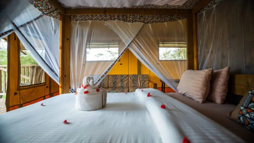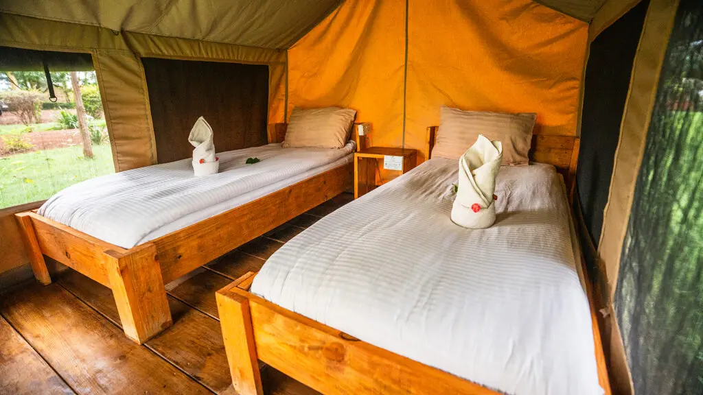 De safaritenten zijn eenvoudig maar praktisch en vormen de perfecte voordelige mogelijkheid om Lake Manyara te ervaren. Ingericht met twee bedden en een kleine zithoek buiten, is dit de kans om terug te keren naar de basis en te genieten van het avontuur. De tenten staan vlakbij het restaurant, de spa en het zwembad.