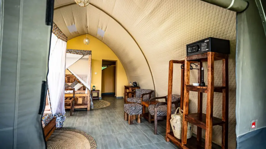 BiJ Africa Safari Rift Valley bieden we drie verschillende tentcategorieën. De safari comfort tent, safari luxury tent en de safari tent. De Safari luxury tent hebben een verhoogd houten dek, woonkamer kamer met een comfortabele bank, een prachtig rustiek houten interieur en een buitendouche waar je kunt douchen onder de zon, maan en sterrenhemel. De Safari Comfort accommodaties zijn ruim en comfortabel, met canvas buitenwanden, een dekzeilvloer en een permanente badkamer.