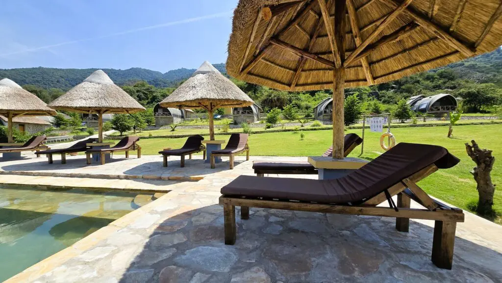 Receptie | Bar en restaurant | Zwembad | Luxury bungalows | Comfort bungalows | Safari tenten | Gratis WIFI in restaurant en bar | Elektriciteit op zonne-energie generator | Water verwarmd door zonne-energie | 24-uurs beveiliging
