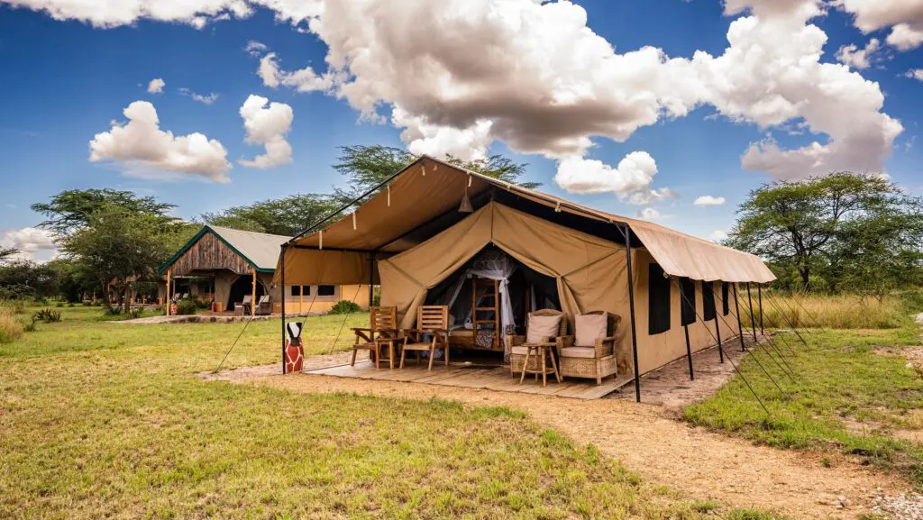 - Comfortabele tenten met veranda waar je uitkijkt over de grasvlaktes