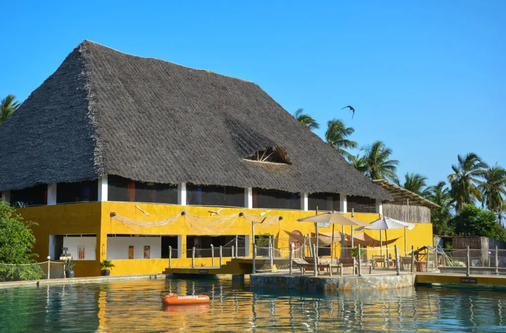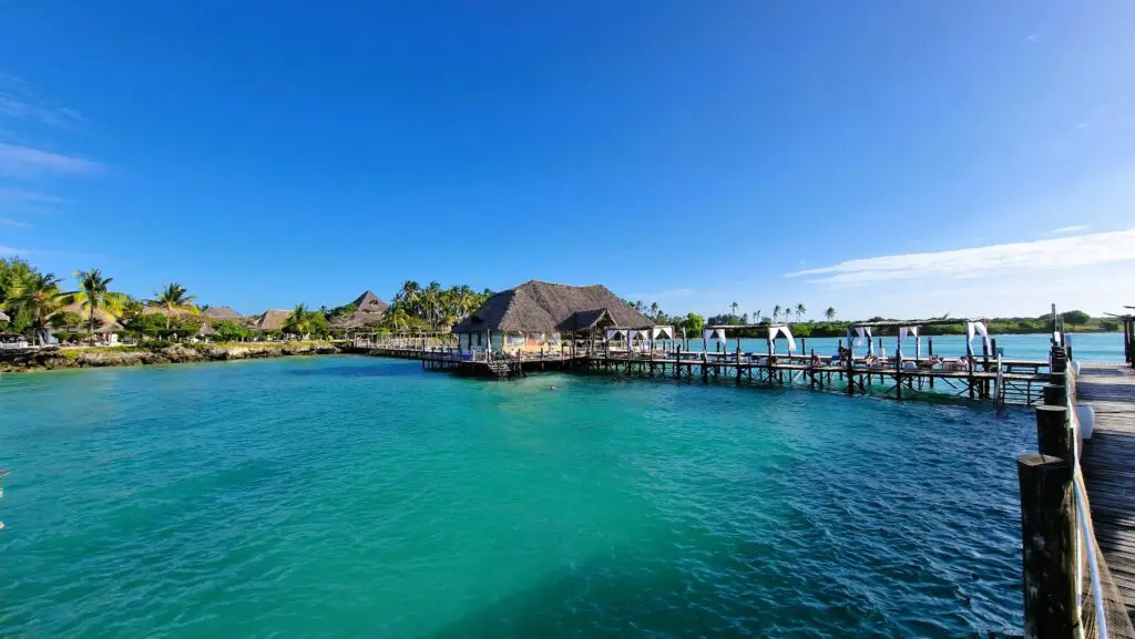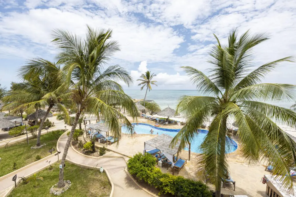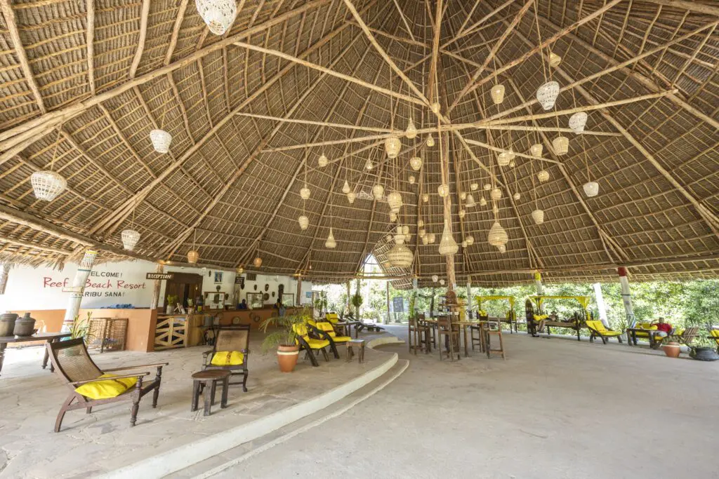Reef & Beach Resort, aan de Zuidoostkust van Zanzibar, biedt een viersterren ervaring met azuurblauwe zee, witte stranden, en palmbomen. Het resort tussen Jambiani en Makunduchi heeft diverse kamertypes, twee zwembaden, een groot restaurant en een mangrovebos doorkruisende houten brug. Geniet van excursies en onderwateravonturen zoals duiken en snorkelen.