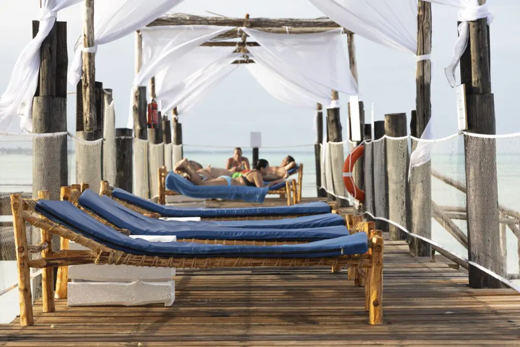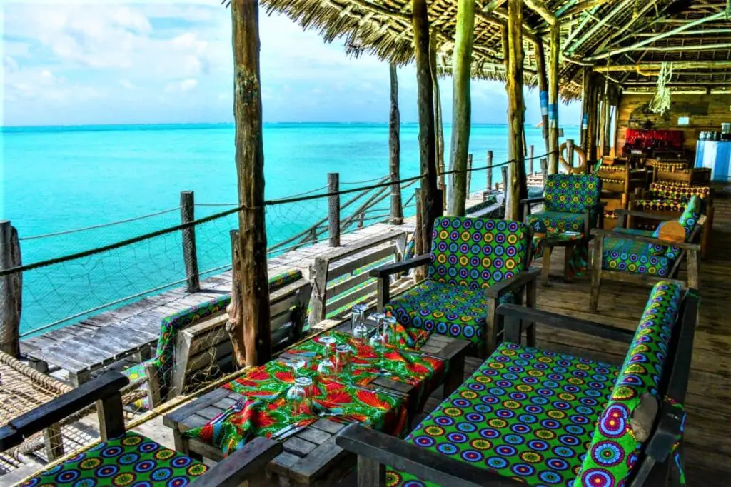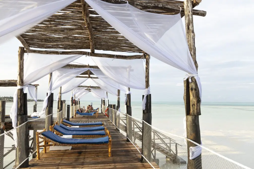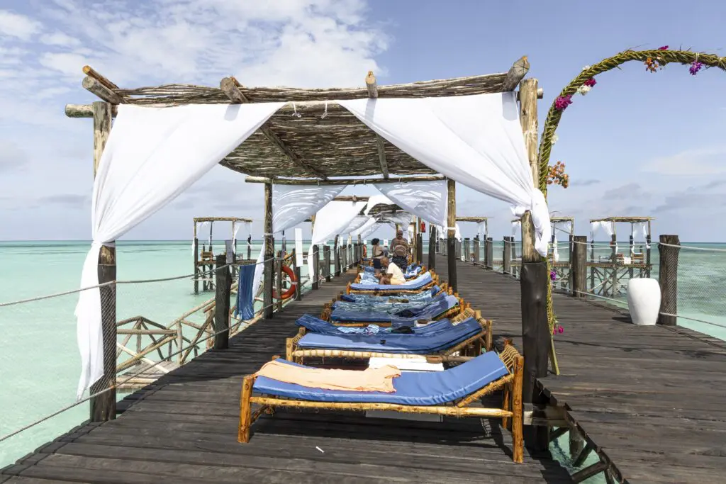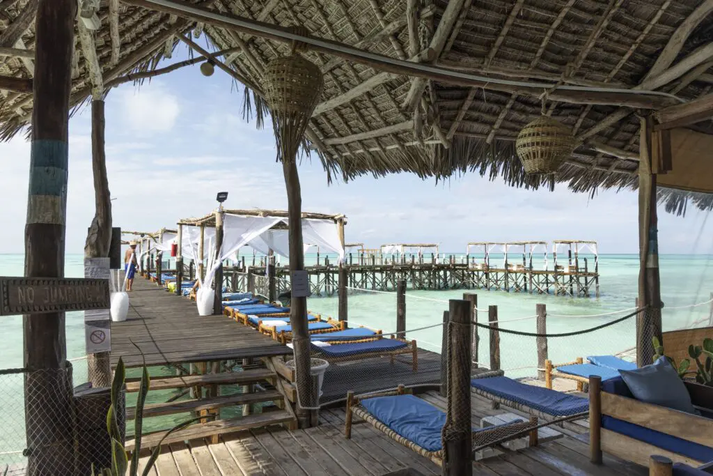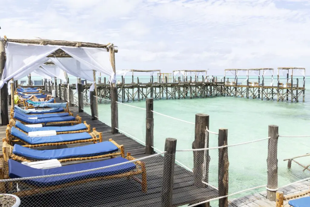 - Jetty lounge bar, die zich uitstrekt over de Indische Oceaan