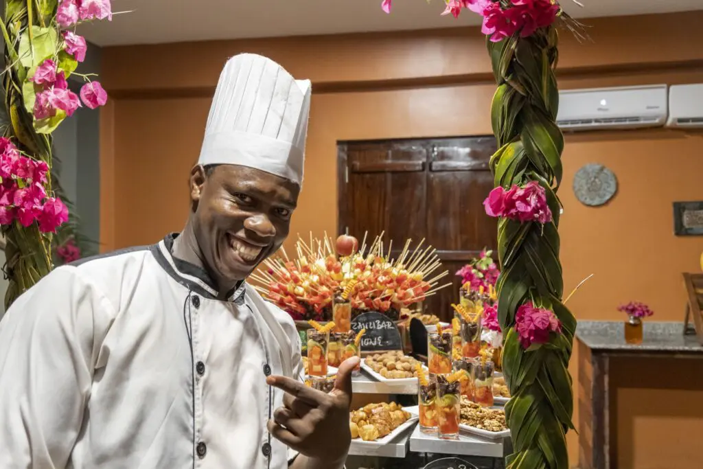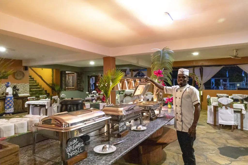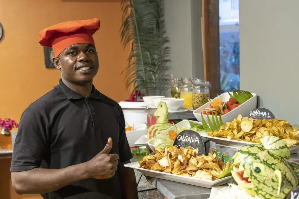 Reef & Beach Resort heeft ook genoeg mogelijkheden om jezelf te verwennen met heerlijk eten en drinken. Het grote all-inclusive restaurant ligt aan het zwembad, vlak bij het mangrovebos. Hier worden dagelijks heerlijke ontbijt-, lunch- en dinerbuffetten verzorgd door de chef. Je kan genieten van de wereldse gerechten en je maaltijd compleet maken met een gerecht van de live-cooking bar. Het brood wordt vers gebakken en er is voldoende keus voor iedereen.