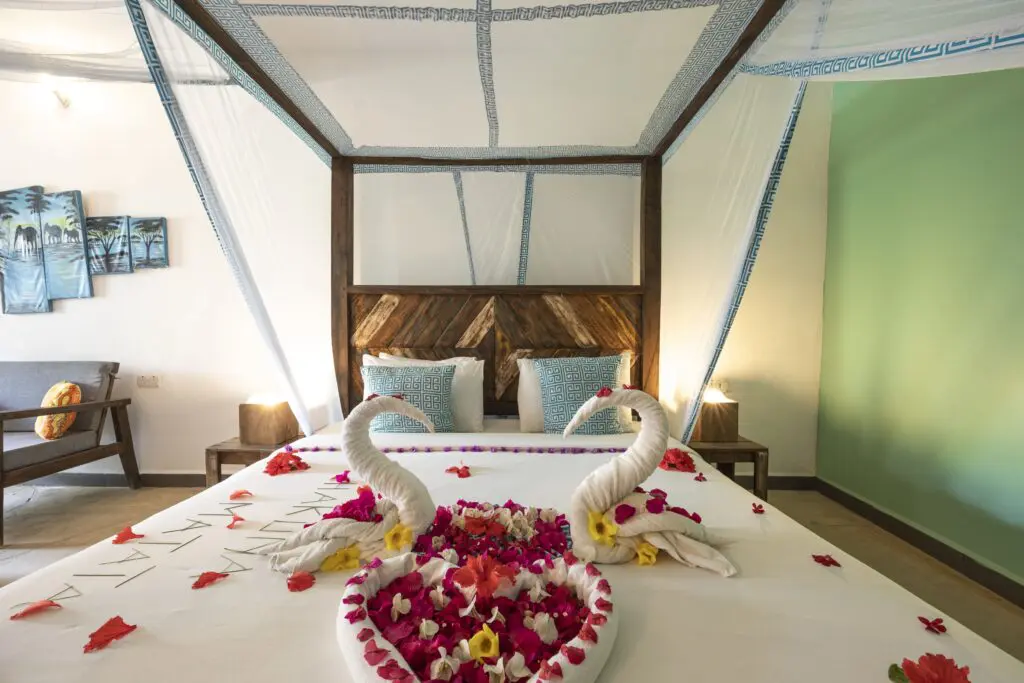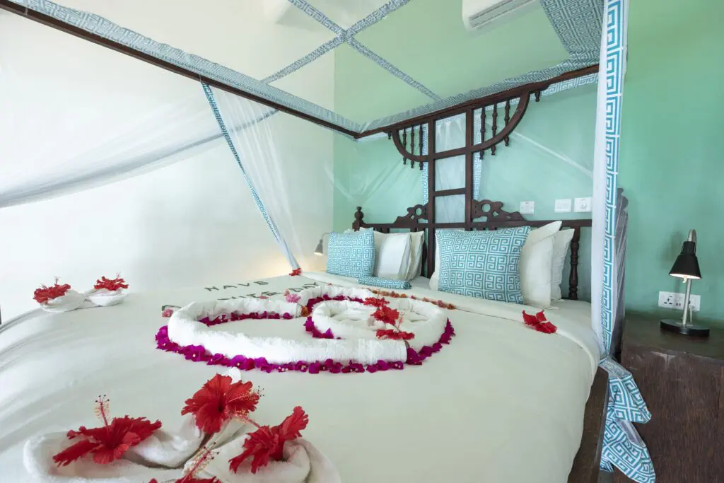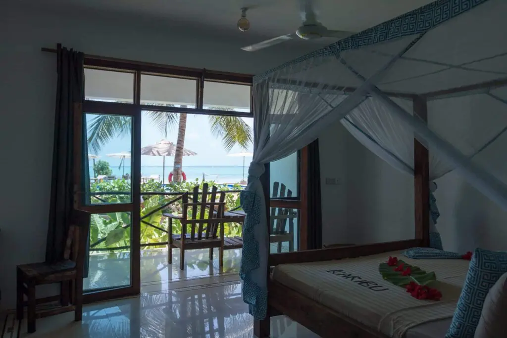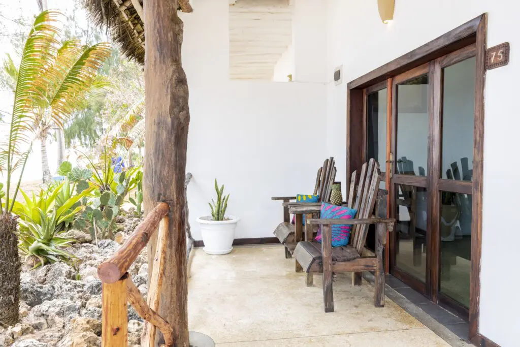 Wil je optimaal zeezicht vanuit je bungalow en vanaf je veranda? Kies dan voor de Ocean bungalow. Deze twee onder een kap bungalows liggen pal aan het strand en bieden meer privacy. De kamers zijn met zorg ingericht en de badkamer biedt alle faciliteiten om jezelf lekker op te frissen. Het bed is in Zanzibariaanse stijl en je kan heerlijk TV kijken vanuit je bed, terwijl je de zee op de achtergrond hoort.