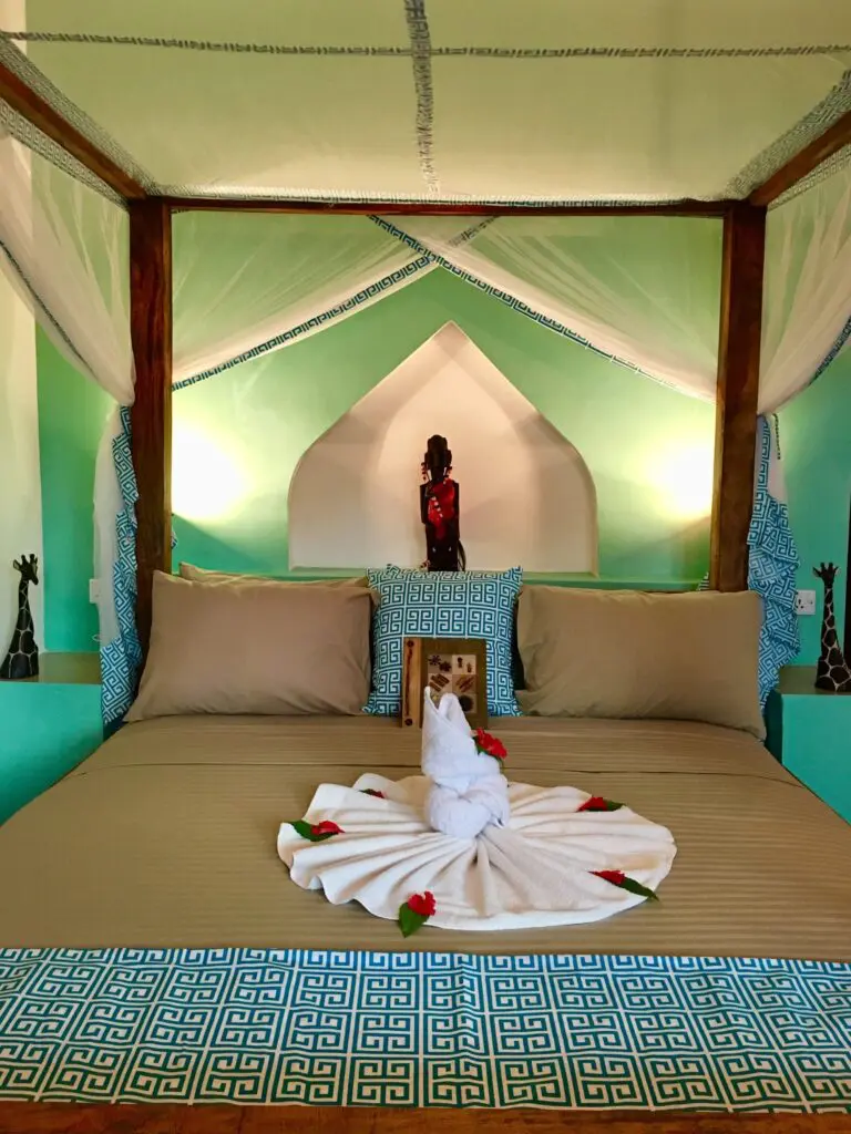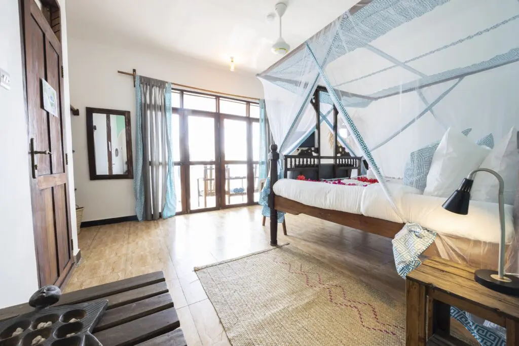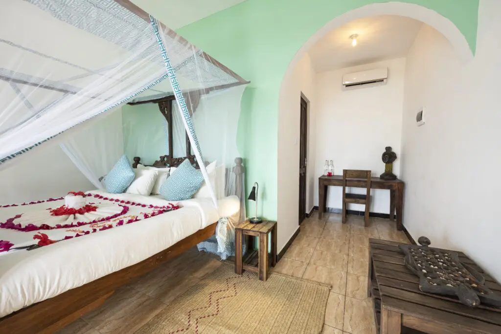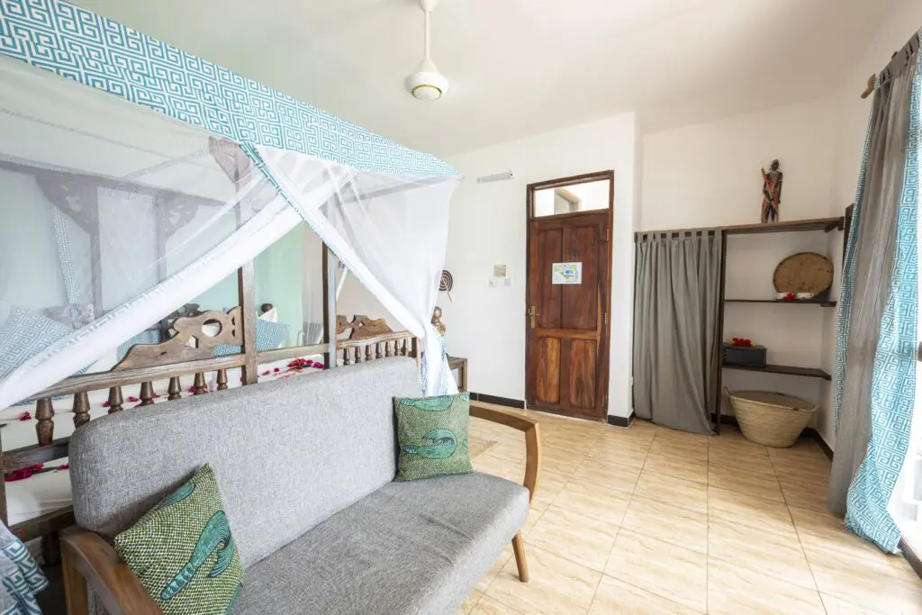 Wil jij meer geld overhouden voor leuke excursies op Zanzibar? Kies dan voor de budgetvriendelijke standaardkamer. Deze compacte maar fijne kamer is voorzien van een tweepersoonsbed met klamboe. De frisse kleuren stralen rust uit en je hebt de mogelijkheid om de dag op te starten met een zelfgemaakt kopje koffie of thee. Het balkon kijkt uit op de groene tuin en deels op het zwembad. De badkamer is compleet met inloopdouche, Europees toilet en wastafel met föhn.