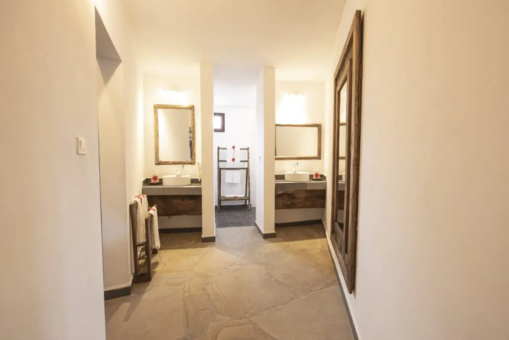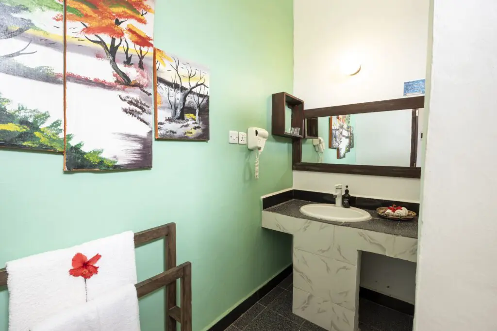 Te midden van de groene oase en op een steenworp afstand van het grote zwembad liggen de suite kamers mangrove/pool view. Je voelt je hier direct thuis en deze kamer zal je de rust en ruimte bieden die je verlangt tijdens je vakantie op Zanzibar. Er staat een tweepersoonsbed in en voldoende kastruimte om jouw spullen in op te bergen. De badkamer is ruim en heeft een fijne inloopdouche, Europees toilet en een wastafel met föhn.