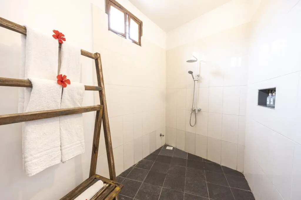 Volledig uitgeruste badkamer met föhn | Begane grond | Uitzicht op zee | Tweepersoonsbed | Eenpersoonsbed op aanvraag | Airconditioning | Klamboe | Gratis WIFI | Kluisje | Koelkastje op aanvraag | Koffie en thee | Veranda met zitje
