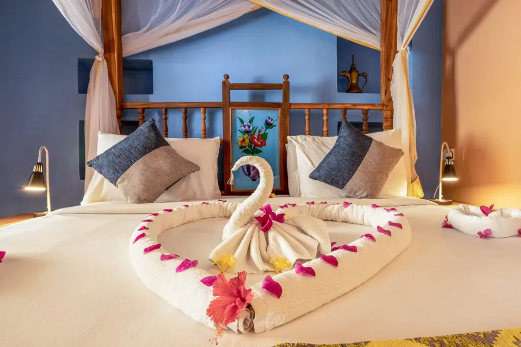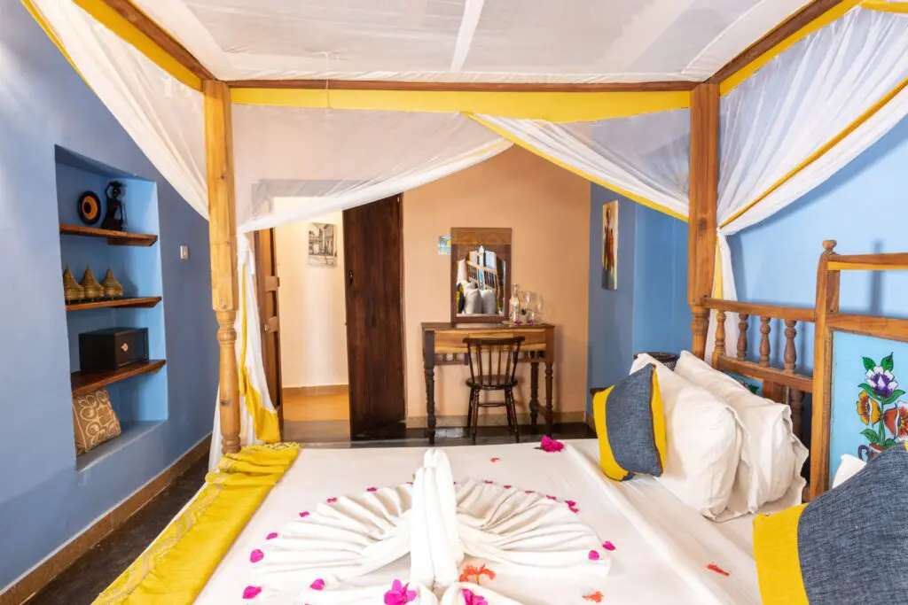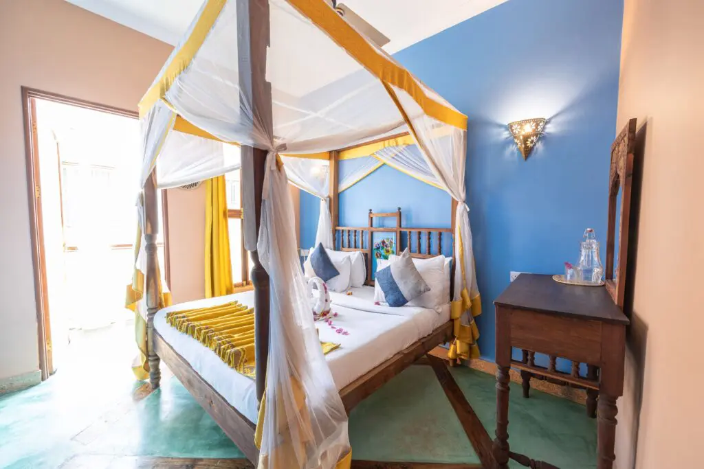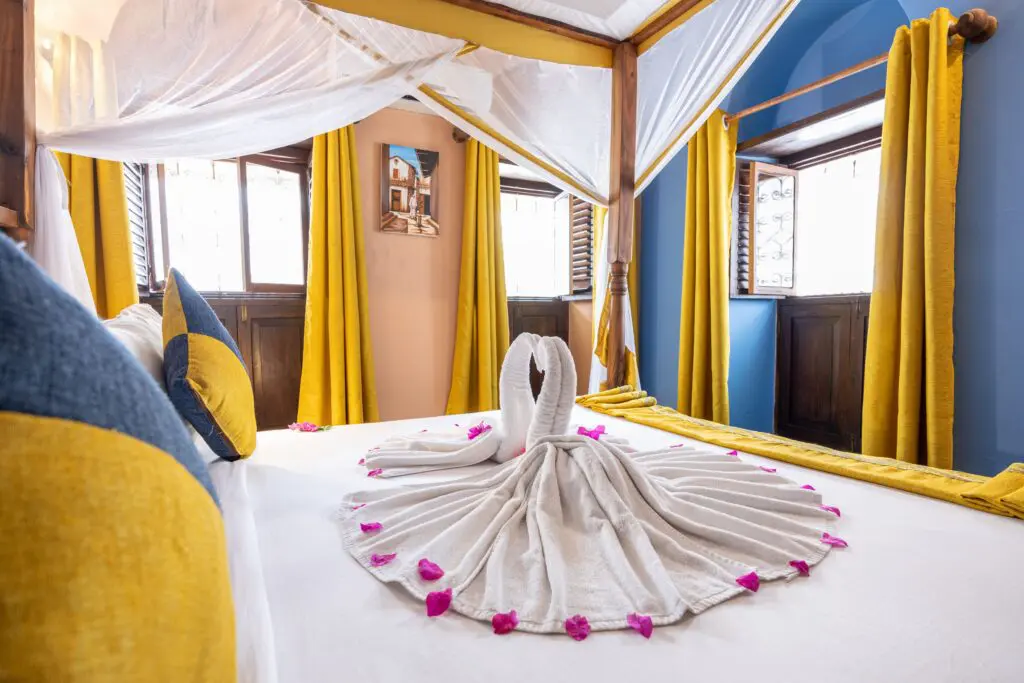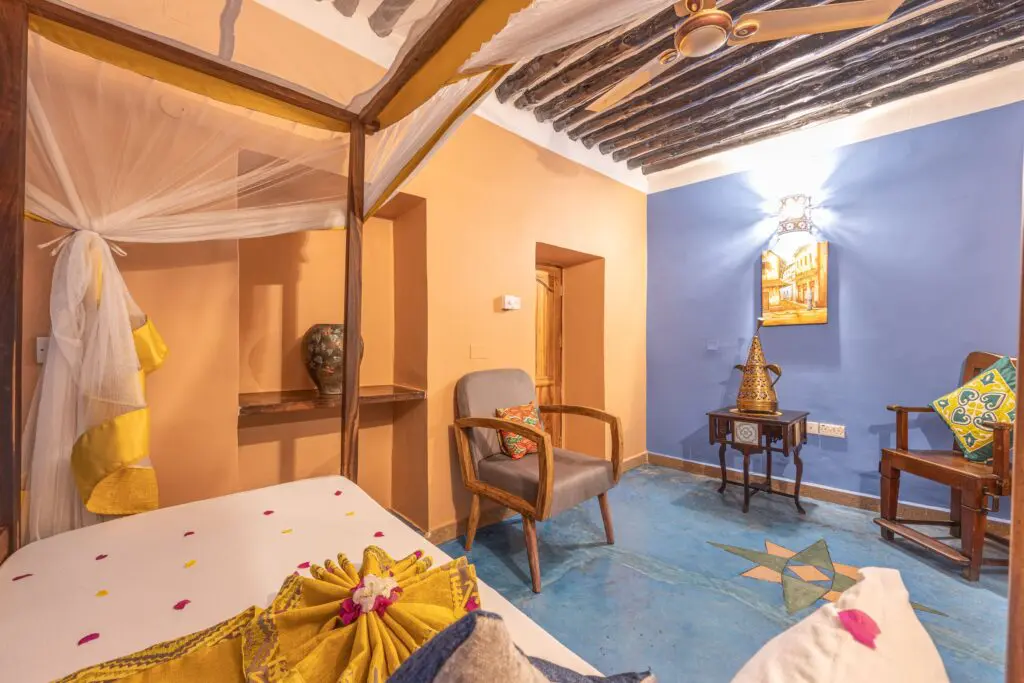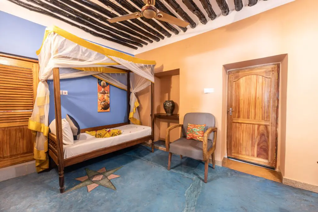 Geen één suite kamer is hetzelfde, maar iedere kamer is een feest om in te overnachten. Afhankelijk van jouw reisgezelschap kom jij in een suite kamer met heerlijke bedden, voldoende opbergruimte en accessoires die jou direct het echte Zanzibar gevoel geven. Sommige suite kamers hebben een fijn balkon met een zitje, waar je even kan nagenieten van een dag vol cultuur en historie. De badkamer heeft een fijne inloopdouche, Europees toilet en een wastafel. Sommige suite kamers hebben een stapelbed of de mogelijkheid om een extra bed te plaatsen.