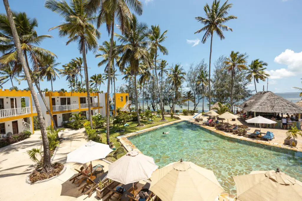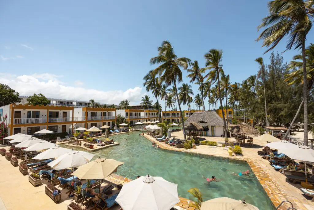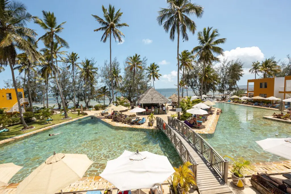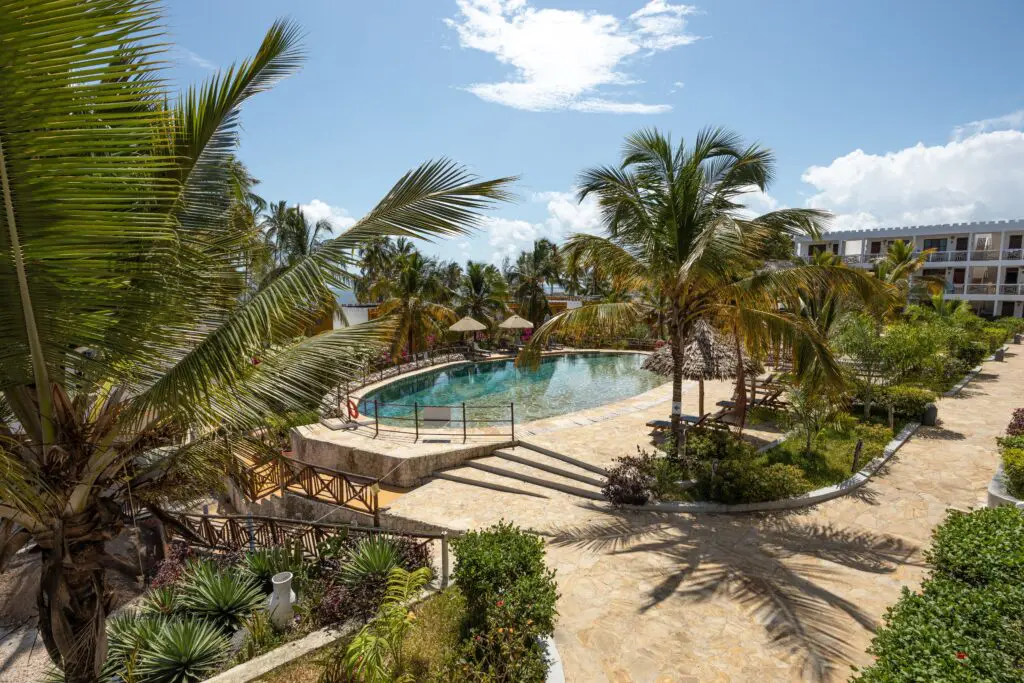 Ervaar een stukje paradijs in en om de zwembaden, waar de palmbomen en de melodieën van de vogels een idyllische oase vormen. Terwijl je lekker in het water dobbert, voel je de tropische zeebries en kun je opwarmen in de zon op een van de ligbedden. Te warm of is de zon te fel? Geen probleem, er staan genoeg parasols en er is een gezellig bar waar je even kan afkoelen en bijkomen. Op en top vakantiegevoel met de oceaan op de achtergrond. Neem even de tijd om te genieten van het adembenemende prachtige uitzicht, met het ritmische gekletter van de golven in de verte. De zwembaden bieden niet alleen een verfrissende onderbreking van de tropische hitte, maar ook ontspannen sfeer voor of na jouw safarireis in Tanzania.