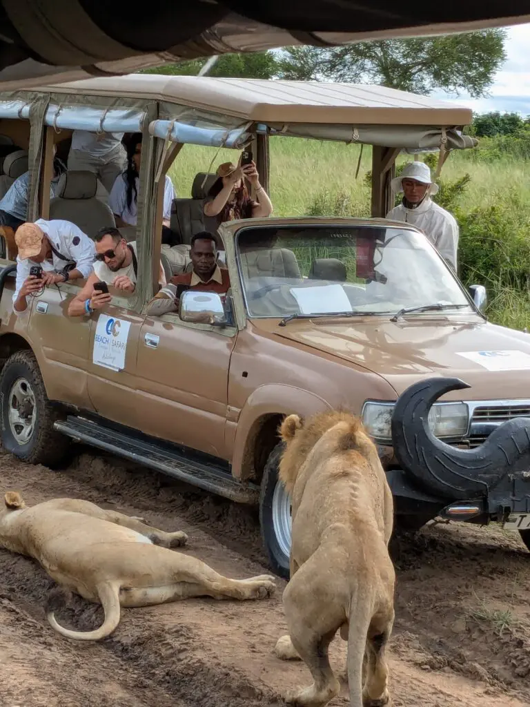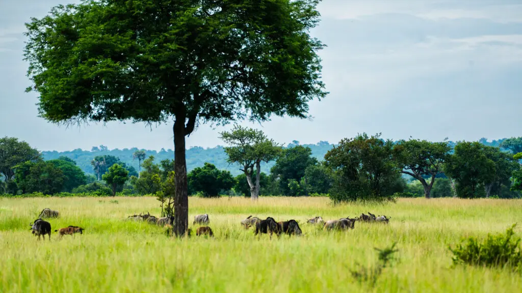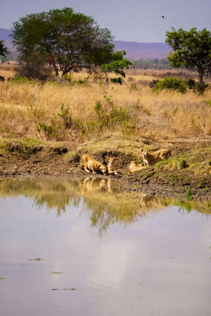 Giraffen, zebra’s, gnoes en olifanten trekken rustig voorbij in het hoge gras, terwijl leeuwen relaxed liggen te slapen iets verderop. Bij de Hippo Pools zie je nijlpaarden badderen in het modderige water, terwijl vogels overal om je heen hun gezang laten horen.