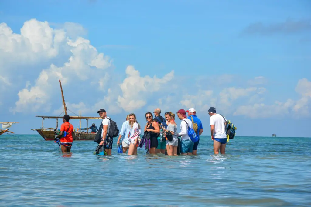 We varen door kobaltblauw water en stoppen op een zandbank om uit te rusten. We serveren tropisch fruit en je kunt snorkelen rond de zandbank. Na ongeveer een uur varen we naar het eiland Kwale.